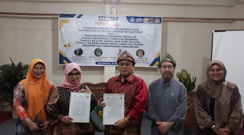 PALEMBANG, MEDIASRIWIJAYA – Seminar Nasional Strategi Kebijakan Pemberdayaan dan Budidaya Petani Rempah Nusantara dan Penandatanganan MoU, MoA dan IA , Fakultas Hukum, Fakultas Ekonomi, Fakultas Ilmu Sosial dan Ilmu Politik , Fakultas Pertanian serta Fakultas Teknik Universitas Tamansiswa Palembang, termasuk Perpanjang MoU Universitas Tamansiswa (Unitas) Palembang dan Kesultanan Palembang Darussalam (KPD) untuk menjadi mitra dalam berbagai bidang, Selasa (20/5/2025) sore.