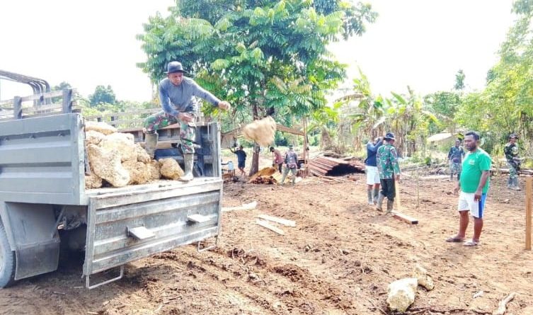 Seperti hari ini, material kembali didistribusikan guna mempercepat pengerjaan Pembangunan Gereja Rumah Pastori dan MCK di sasaran fisik TMMD ke-123 Kodim 1712/Sarmi.