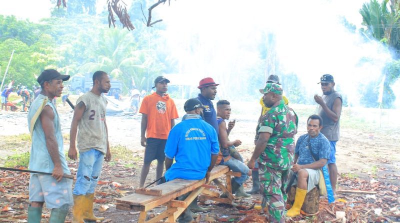 Disela Sasaran Fisik, Satgas 123 Kodim Sarmi Laksanakan Komsos dengan Warga Kp Podena