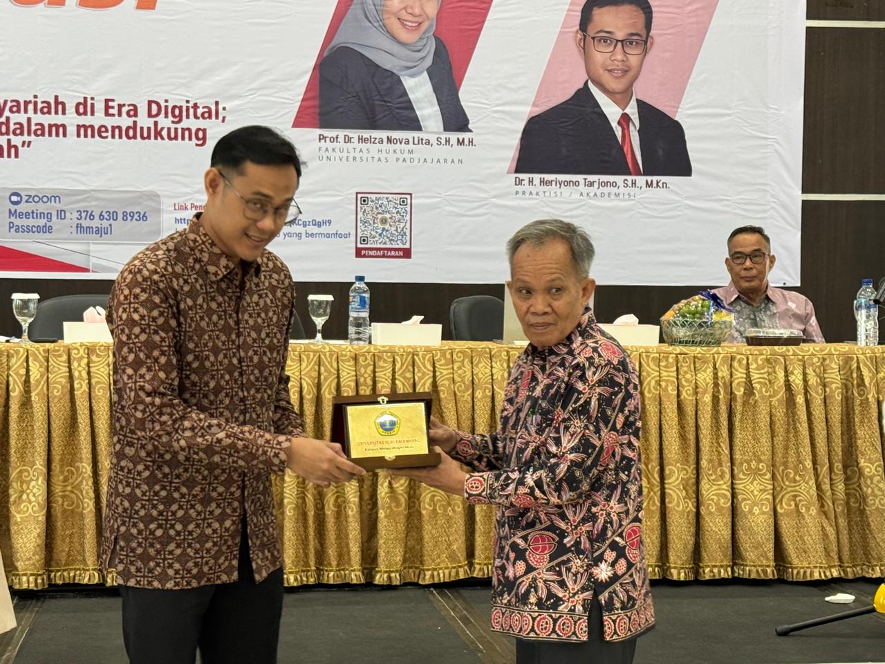 Narasumber Diskusi Publik dengan topik Perkembangan dan Pengaturan Ekonomi Syariah di Indonesia (Penguatan Digitalisasi Ekonomi Syariah, Regulasi dan Praktik disampaikan Prof. Dr. Helza Nova Lita, S.H.,M.H.Dosen Fakultas Hukum Universitas Padjadjaran, yang juga Ketua Pusat Kajian Hukum Ekonomi dan Keuangan Syariah FH UNPAD. Selanjutnya, narasumber Dr. H. Heriyono Tardjono, SH, MKn. Notaris/PPAT mengusung tema “Kepastian Hukum dan Penguatan Cyber Law dalam Mendukung Keberlanjutan Ekonomi Syariah di Era Digital. (adv)
