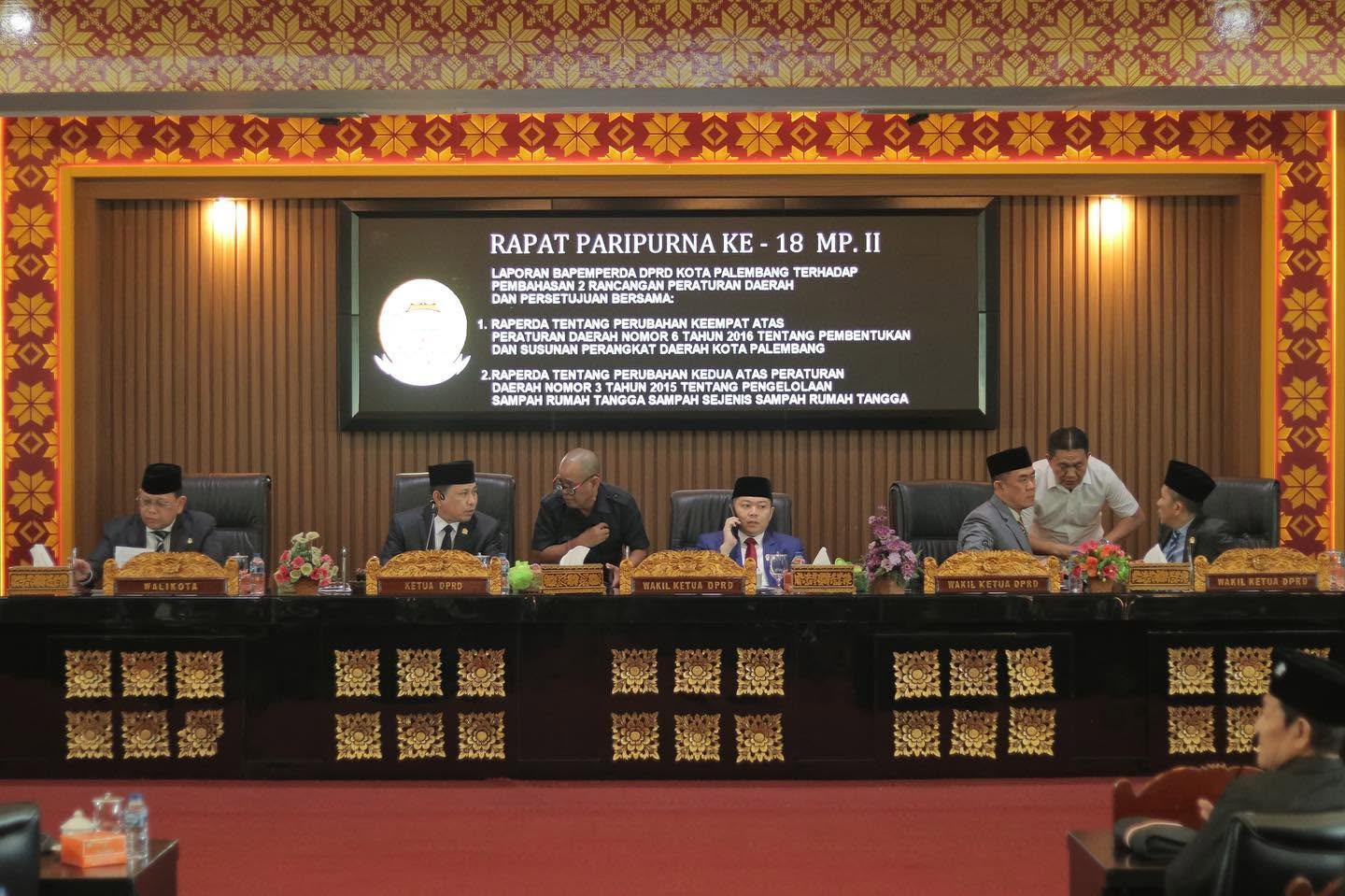 Adapun agenda Paripurna kali ini antara lain membahas Laporan Bapemperda DPRD Kota Palembang terhadap pembahasan 2 Rancangan Peraturan Daerah dan Persetujuan Bersama. Selanjutnya membahas Raperda tentang Perubahan Keempat atas Perda No. 6 Tahun 2016 tentang Pembentukan Susunan Perangkat Daerah Kota Palembang.Agenda paripurna selanjutnya adalah pembahasan Raperda tentang Perubahan Kedua atas Perda No.3 Tahun 2015 tentang Pengelolaan Sampah Rumah Tangga Sampah Sejenis Sampah Rumah Tangga.