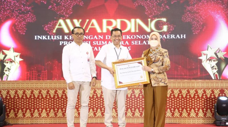 Penghargaan diberikan secara langsung oleh Ketua OJK Sumsel pada acara Launching Sumsel Financial Economic Collaboration di Ballroom Gedung OJK Sumsel, Rabu (17/12/2025).