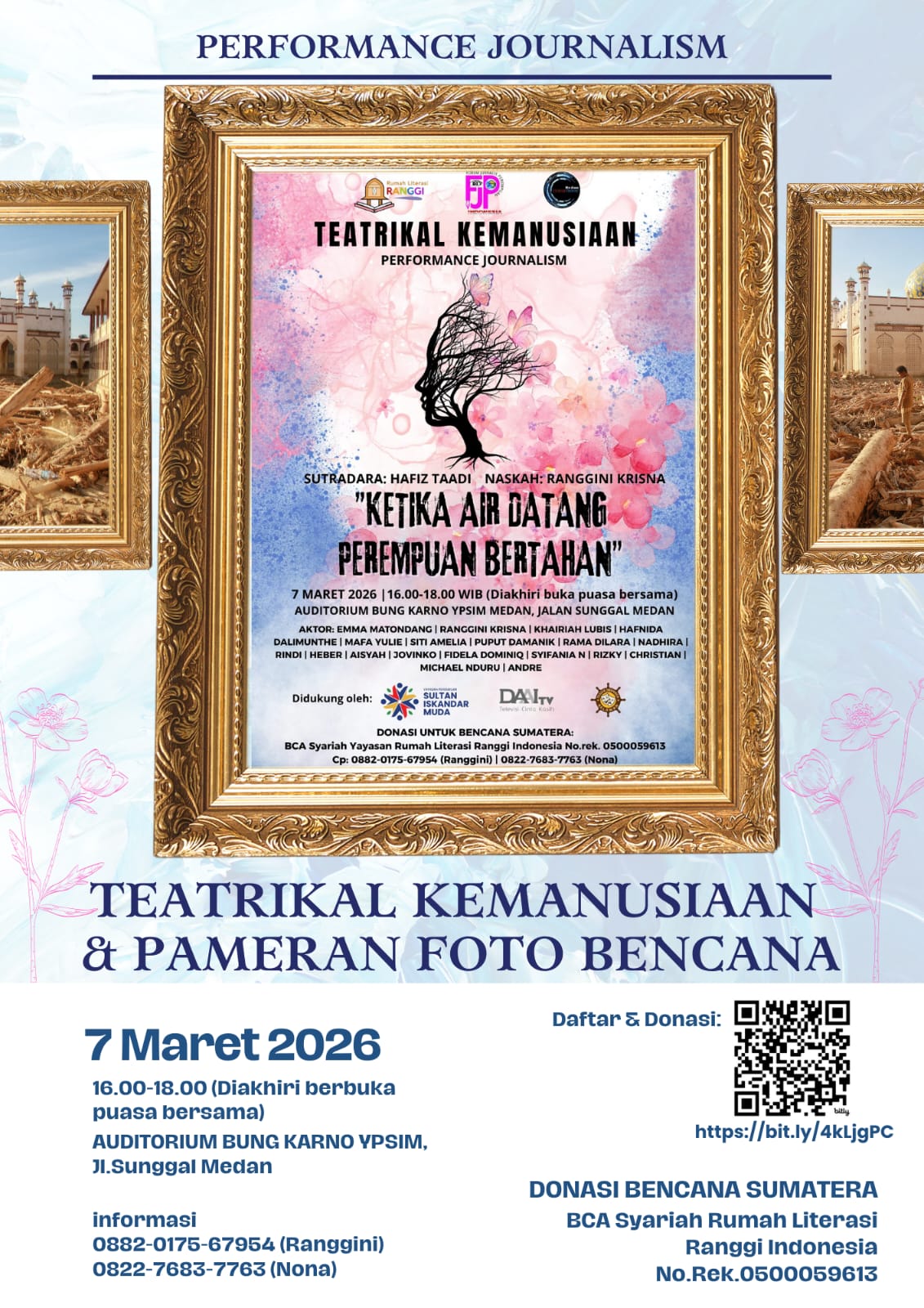 Pementasan yang lahir dari kolaborasi Forum Jurnalis Perempuan Indonesia (FJPI), Rumah Literasi Ranggi (RLR) dan Medan Teater Tronic ini adalah sebuah cara kreatif menyampaikan pesan agar publik tidak melupakan bencana yang melanda Sumatera.