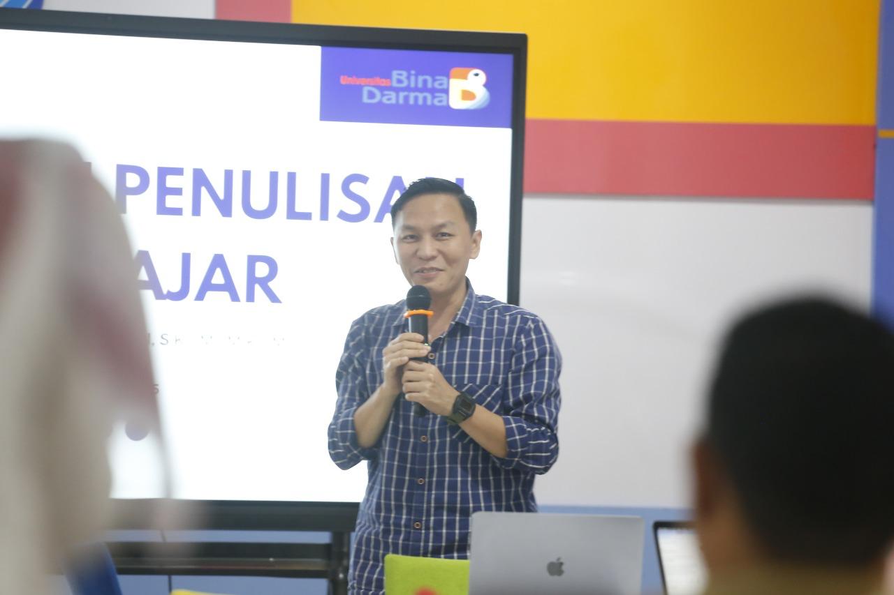 PALEMBANG,MEDIASRIWIJAYA – Universitas Bina Darma kembali menunjukkan komitmennya dalam meningkatkan kualitas pendidikan dengan menyelenggarakan Pelatihan Membuat Buku Ajar berbasis AI yang disampaikan oleh dosen universitas bina darma yang juga merupakan ahli dalam pengembangan bahan ajar Dr.Usman Efendi,M.Kom di ruang smart class kampus utama universitas Bina Darma pada tanggal 12 Februari 2025. Beliau juga merupakan Ketua Asosiasi doktor sistem informasi Indonesia dan anggota di Asosiasi Pendidikan Tinggi Informatika dan Komputer Indonesia.