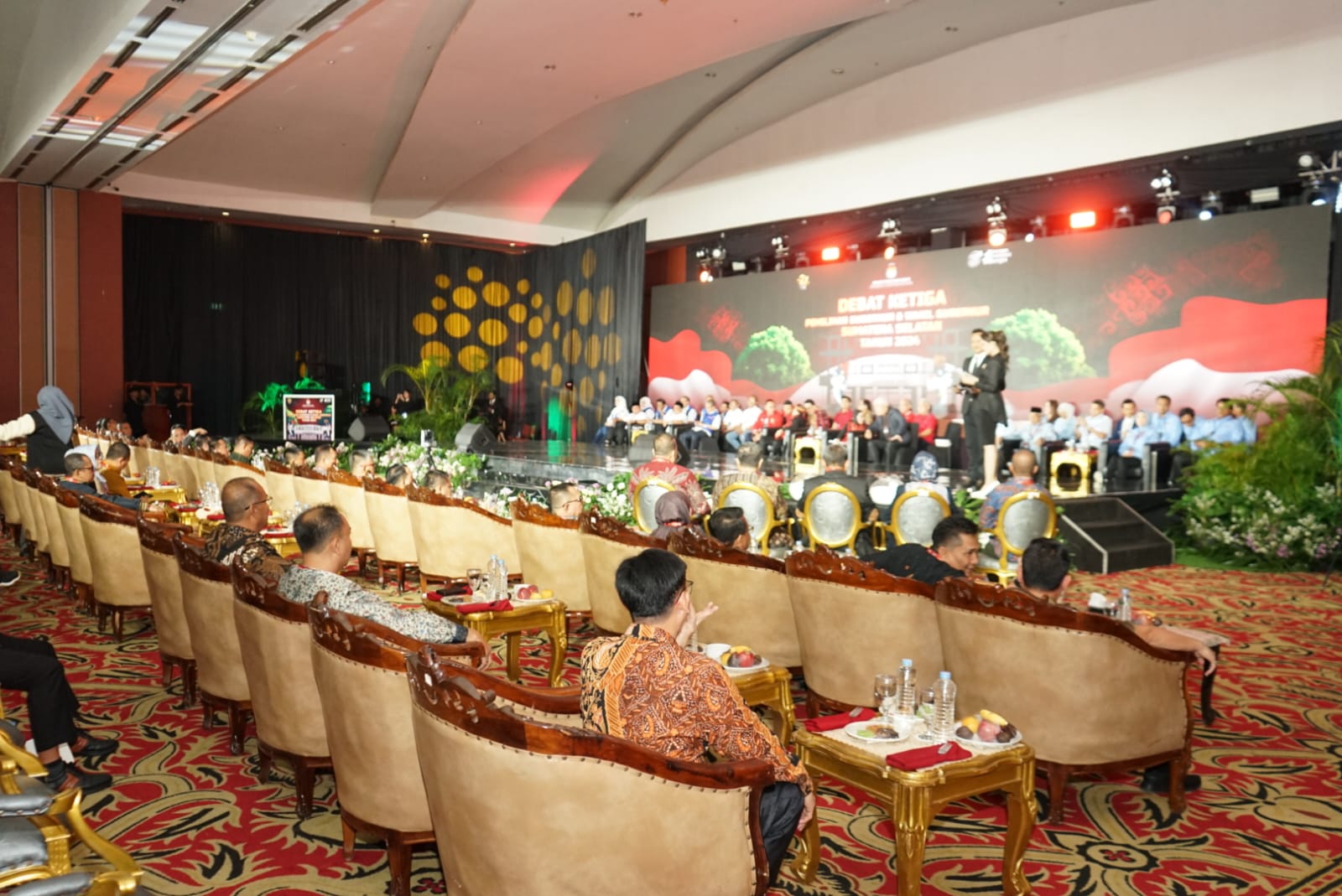 PALEMBANG,MEDIASRIWIJAYA – Kepala Kantor Wilayah Kementerian Hukum dan HAM Sumatera Selatan Dr Ilham Djaya, menghadiri debat pertama Calon Gubernur dan Wakil Gubernur Sumatera Selatan Tahun 2024, yang berlangsung pada Kamis (21/11). Acara ini diselenggarakan oleh Komisi Pemilihan Umum (KPU) Provinsi Sumatera Selatan dan bertempat di Hotel Aryaduta Palembang.