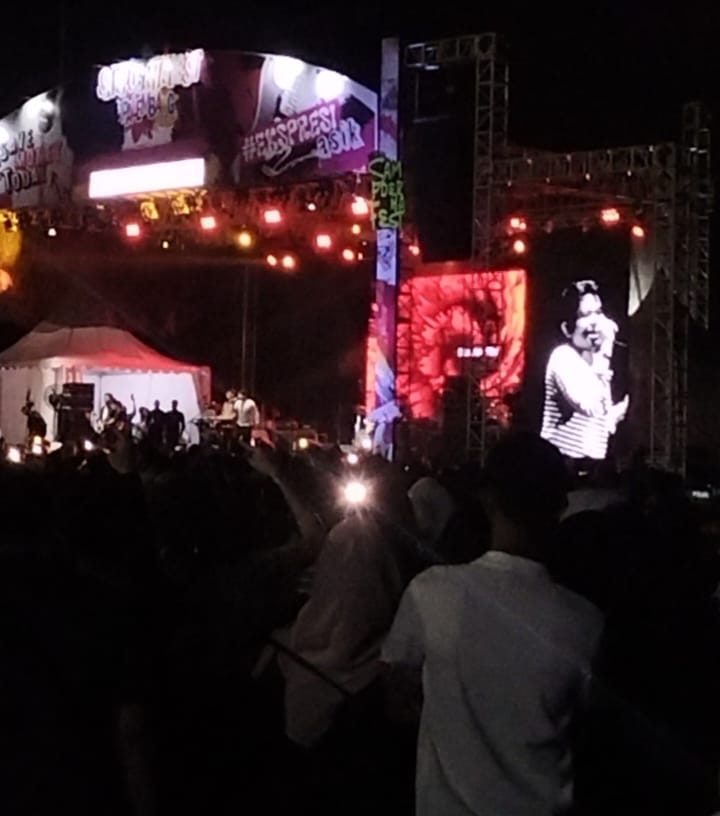 Teks foto: Musisi papan atas, di antaranya Juicy Luicy, Vierratale, Pamungkas, Lomba Sihir, Rumahsakit, Kopral Jono, serta Rakyat Civil yang tampil secara bergantian.
