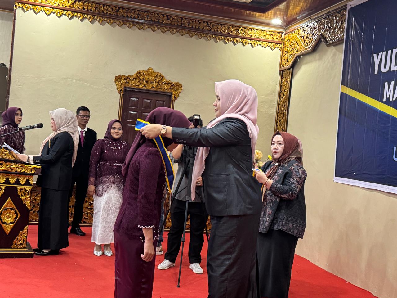 Teks foto: Rektor diwakili Warek I Assoc. Prof. Dr. Dessy Wardiah, M.Pd saat menyerahkan penghargaan kepada lulusan terbaik.