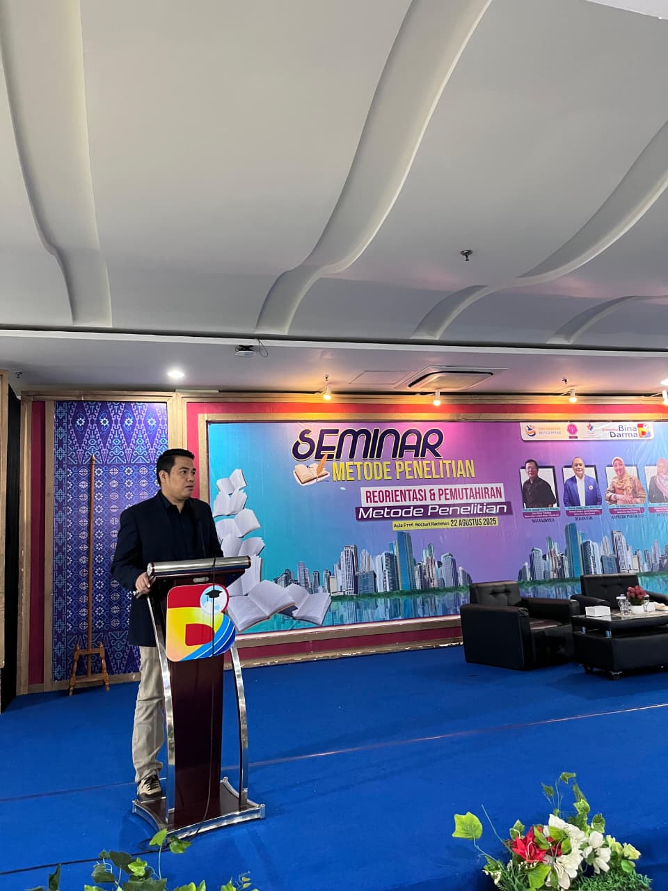 Acara dibuka secara resmi oleh Wakil Rektor Bidang Riset, Inovasi, dan Teknologi Universitas Bina Darma Prof Dr.Edi Surya Negara,M.Kom, Dalam sambutannya, beliau memberikan apresiasi tinggi atas terselenggaranya kegiatan ini “Penelitian adalah aspek penting perguruan tinggi, Seminar ini menjadi ruang penting untuk memperbarui cara pandang kita dalam riset, sehingga penelitian yang lahir tidak hanya akademis, tetapi juga bermanfaat bagi masyarakat,” ujarnya.