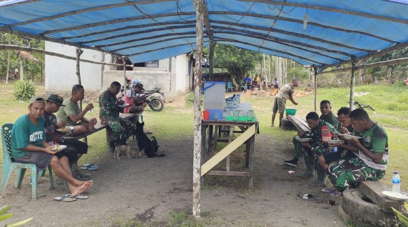 Momen Kebersamaan di Lokasi TMMD : Warga dan Satgas TMMD 123 Kodim 1712/Sarmi Makan Bersama