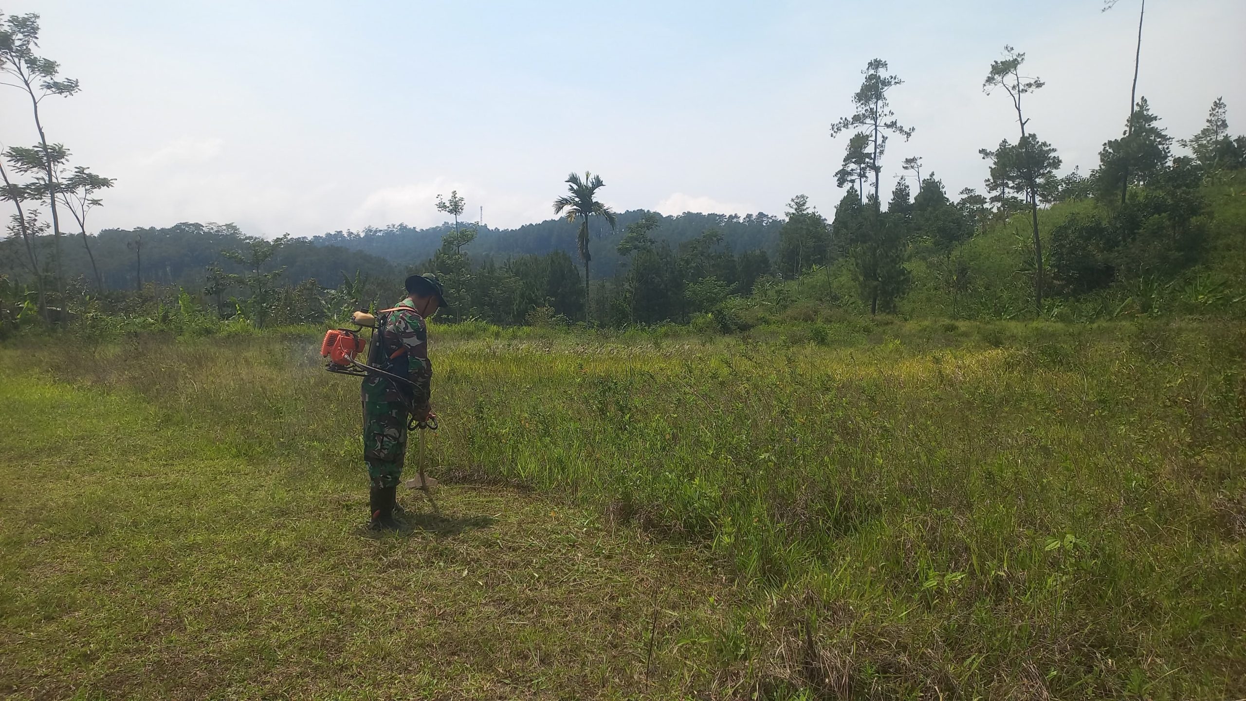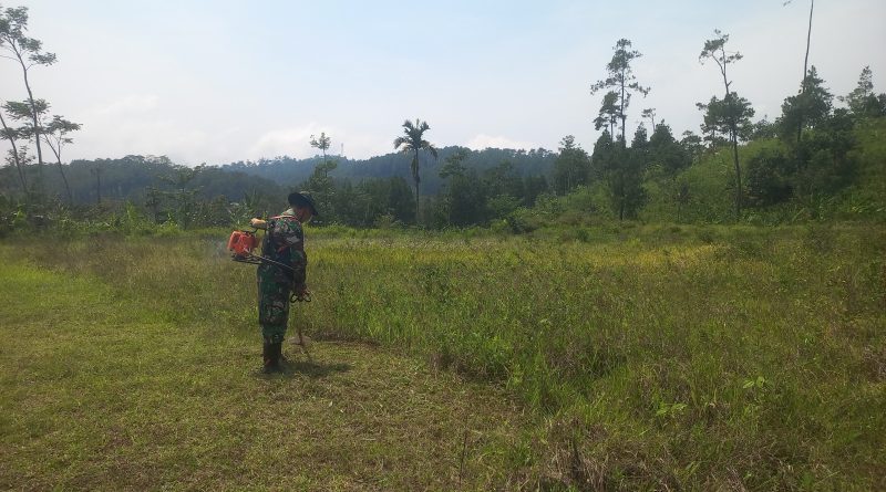 Persiapkan Tempat Penutupan TMMD Reg Ke-122 Kodim Pemalang, Anggota Koramil Watukumpul Bersihkan Lapangan