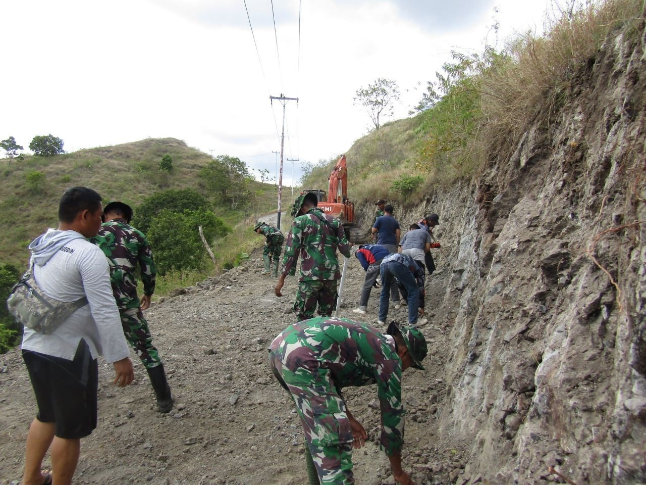 Gotong royong saling membantu untuk membersihkan kiri kanan jalan sebagian ada mengangkat batu untuk meratakan di kiri kanan jalan baru. Disini peran TNI Manunggal bersama warga sangat kental.