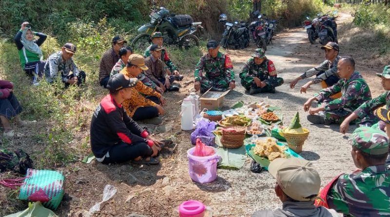 Personel Satgas TMMD Reg 122 Bersama Masyarakat Menggelar Syukuran HUT TNI Ke 79 Secara Sederhana