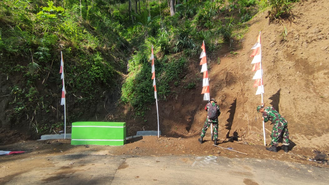 Sambut Acara Penutupan TMMD Ke-122 Tahun 2024, Satgas Kodim Pemalang Pasang Umbul-Umbul di Sepanjang Jalan