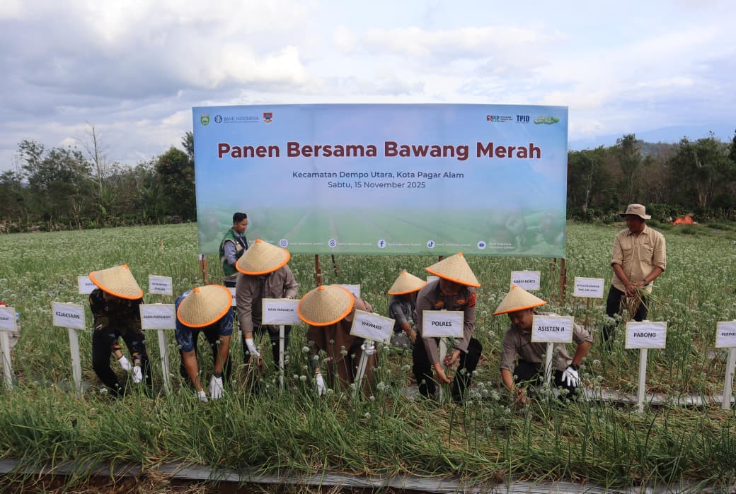 PAGARALAM, MEDIASRIWIJAYA –Dalam upaya memperkuat ketahanan pangan daerah sekaligus mendukung pengendalian inflasi, Kantor Perwakilan Bank Indonesia Provinsi Sumatera Selatan bersama Pemerintah Kota Pagar Alam melakukan kegiatan Panen Bersama Bawang Merah di Kecamatan Dempo Utara, Kota Pagar Alam, Sabtu, 15 November 2025. Kegiatan ini merupakan bukti nyata dukungan konkret Bank Indonesia bagi peningkatan produktivitas sektor pertanian, khususnya pada komoditas bawang merah yang berkontribusi besar terhadap pembentukan inflasi daerah.