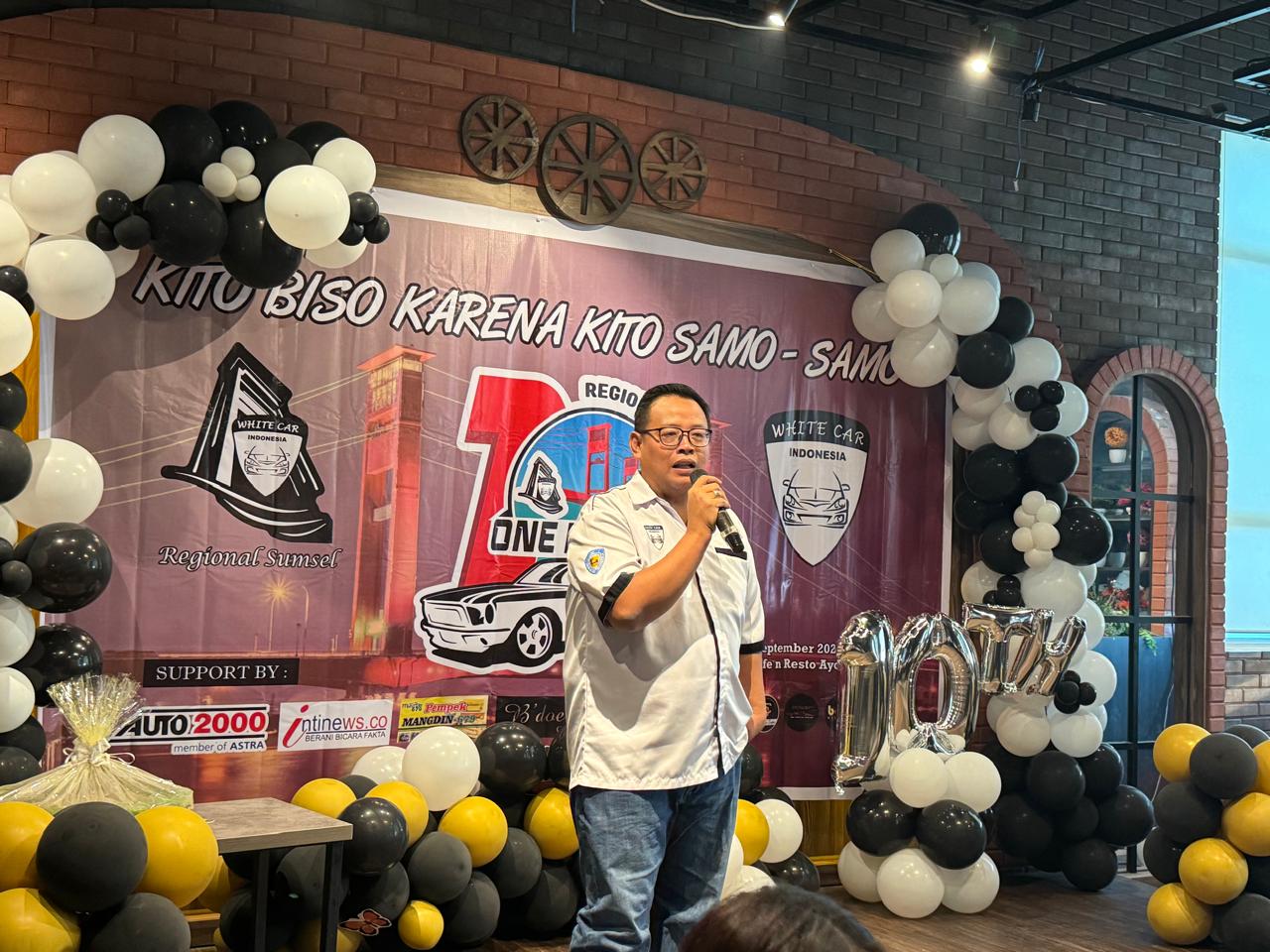 PALEMBANG, MEDIASRIWIJAYA – Solid, Guyub dalam Kebersamaan” Itulah harapan Ketua Umum White Car Indonesia (WCI) Pusat, Koko Andriano yang secara langsung hadir di Palembang dalam rangka Aniversary 10 Tahun WCI Region Sumsel di Barcode Ayola Hotel Palembang, Sabtu 21 September 2024.