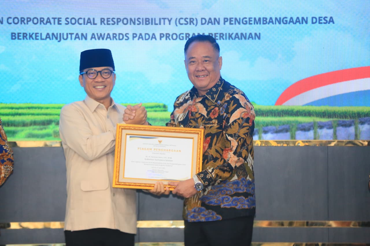JAKARTA, MEDIASRIWIJAYA — Pemerintah Provinsi Sumatera Selatan (Sumsel) kembali menorehkan prestasi di tingkat nasional. Di bawah kepemimpinan Gubernur Sumsel H. Herman Deru dan Wakil Gubernur H. Cik Ujang, Pemprov Sumsel menerima penghargaan atas capaian Corporate Social Responsibility (CSR) dan pengembangan desa berkelanjutan pada sektor perikanan.