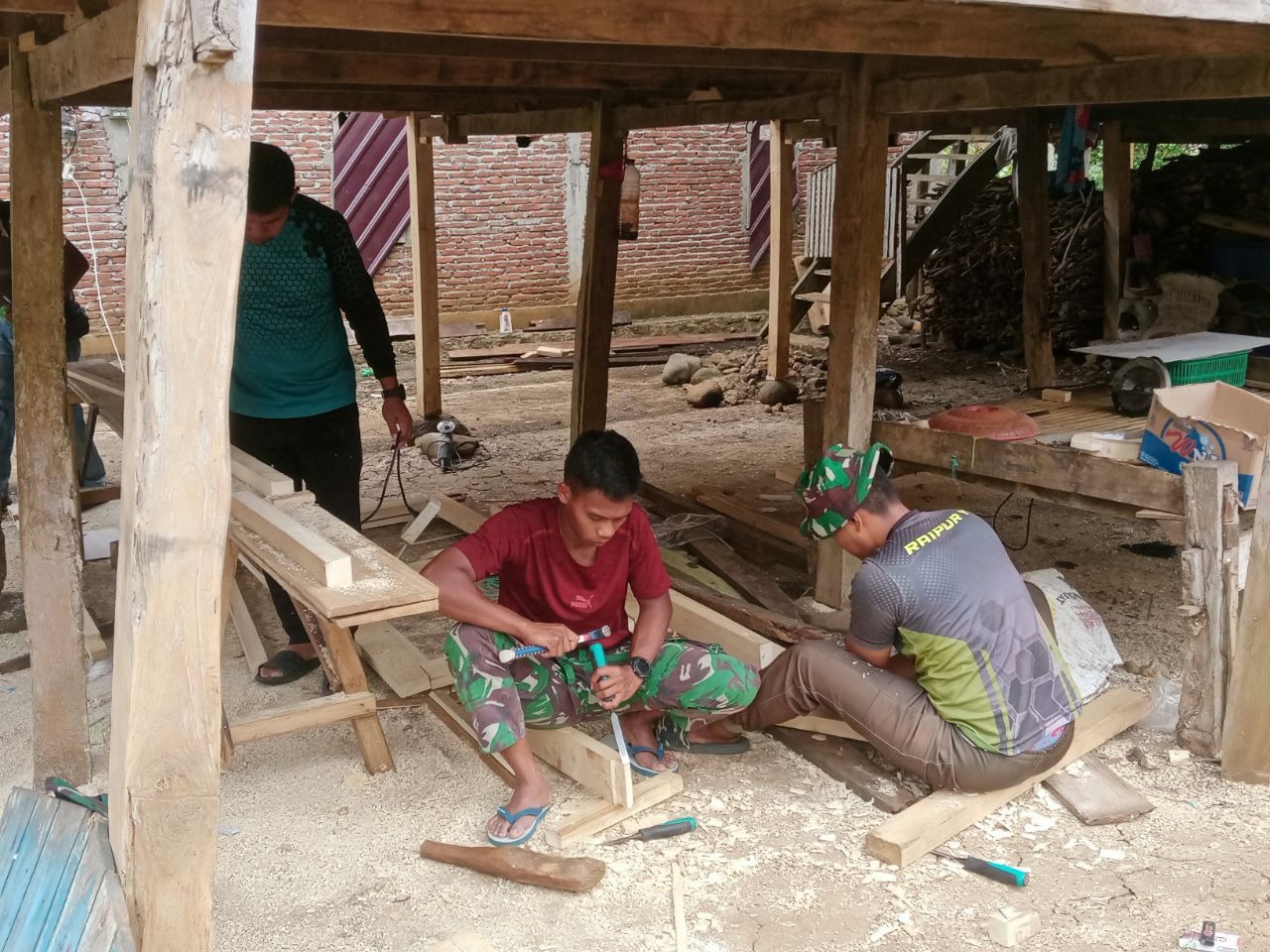 Sertu Saharuddin selaku kepala tukang Satgas TMMD Kodim 1407/Bone bersama anggota satgas yang lain kebut pembuatan Kuseng pintu dan jendela dengan harapan cepat selesai sebelum waktunya tiba.