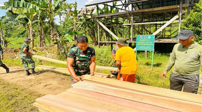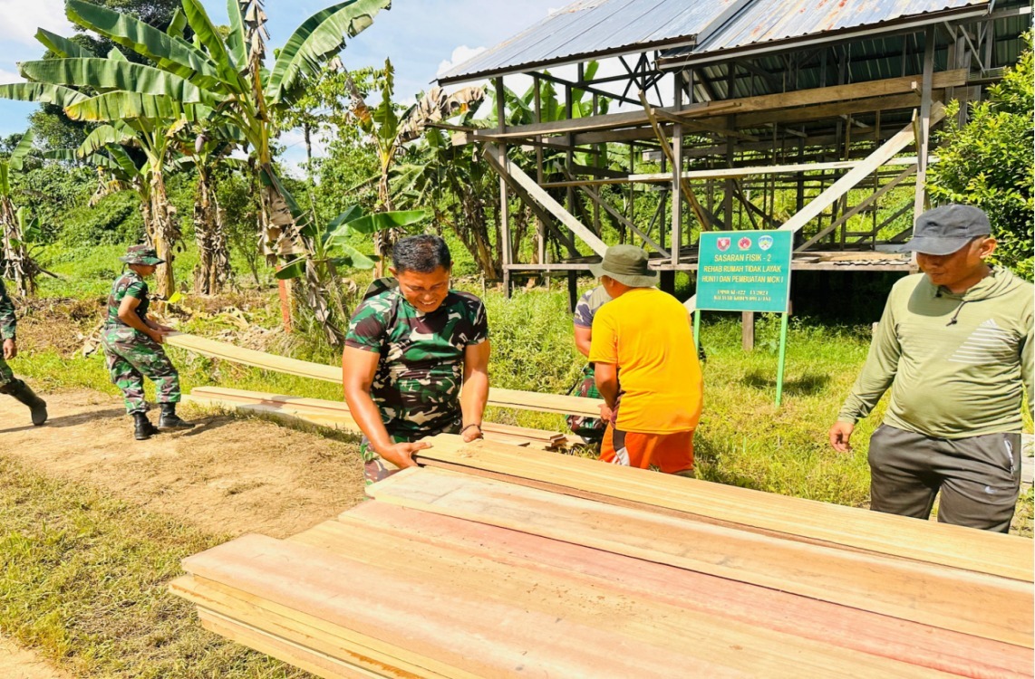 Tana Tidung – Personel Satgas TMMD 122 kodim 0914/TNT dengan teriknya matahari tak surutkan semangat dalam percepatan perehaban rumah pak gatot di desa Sebidai kec.Sesayap kab.Tana Tidung.