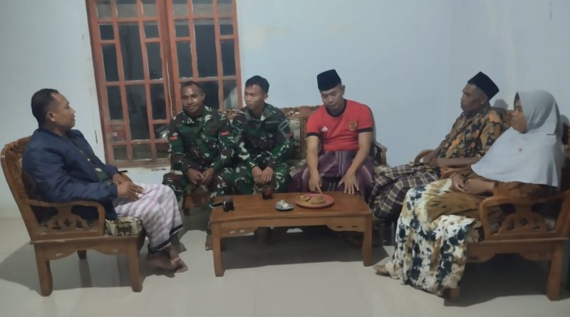 Tampak anggota Satgas TMMD Reguler ke 122 tahun 2024 Kodim 0711/Pemalang Pratu Hilky dan Pratu Aniss bersilaturahmi di rumah bapak Darto (58) warga desa Tambi.