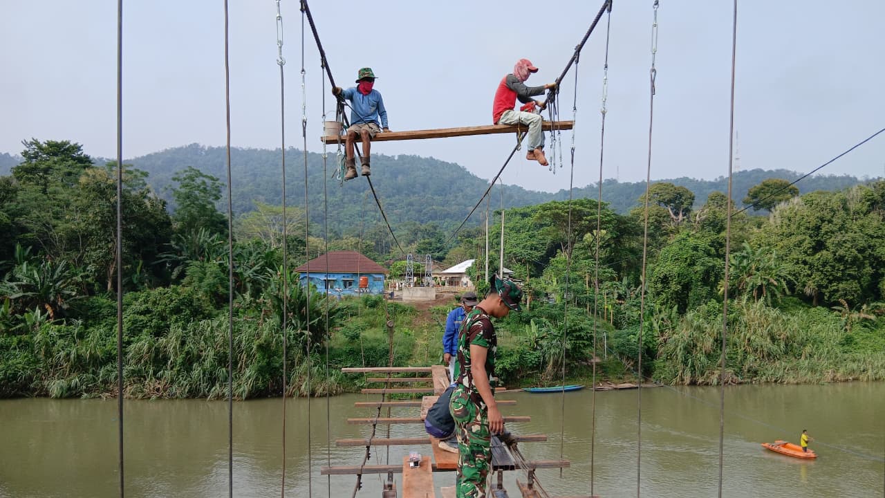 Wujudkan Impian Warga, Prajurit TNI Kebut Pembangunan Jembatan Gantung Sungai Ogan